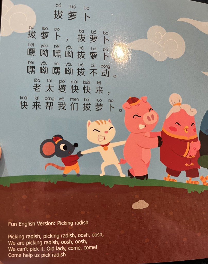 I know that music helps us to learn, so, to embark on Mandarin, I’m starting with children’s songs.