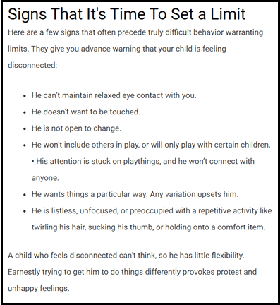 These signs – things they say show you it’s time to set a limit – almost perfectly duplicate any list you can find of common symptoms of autism.
