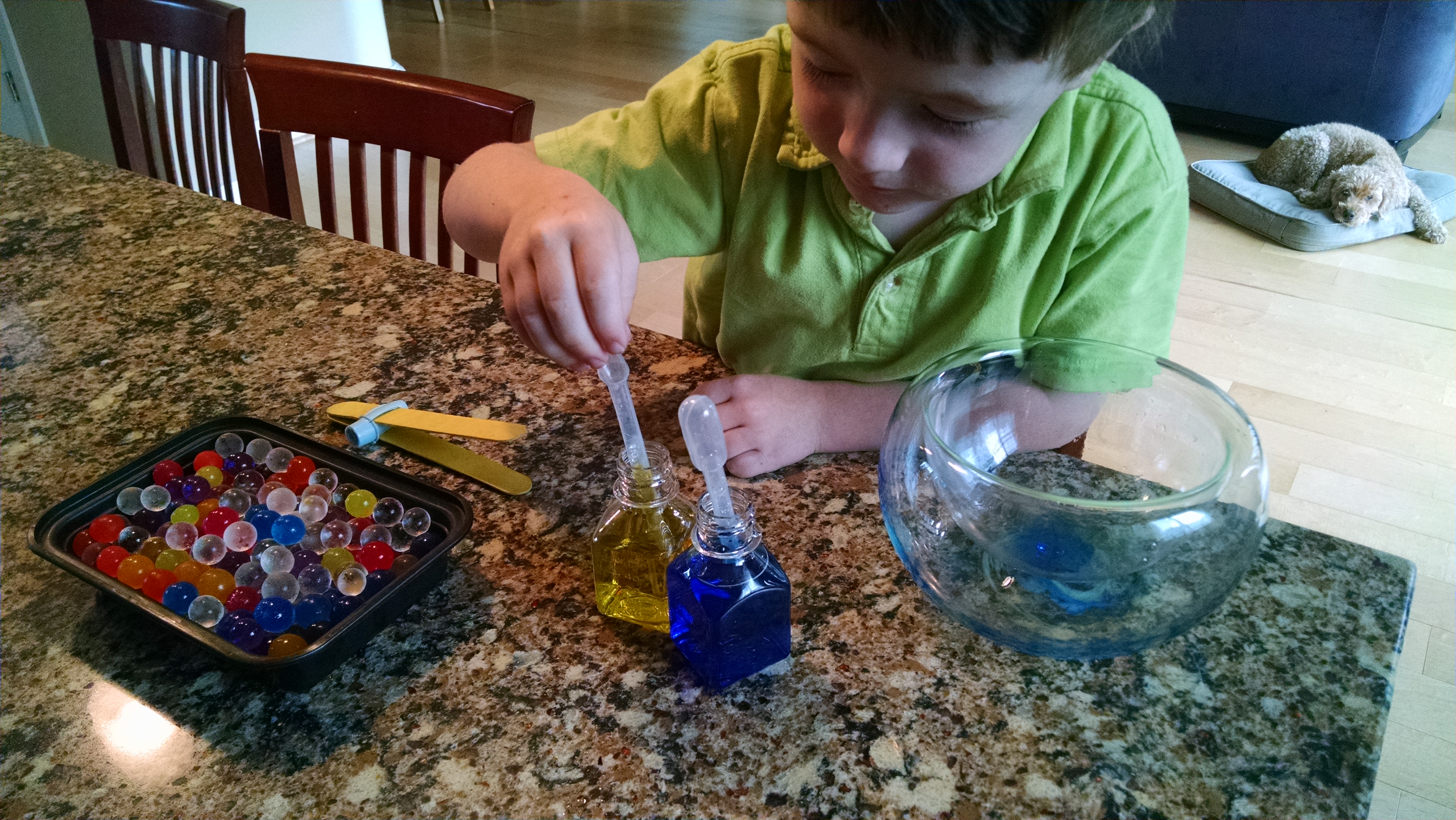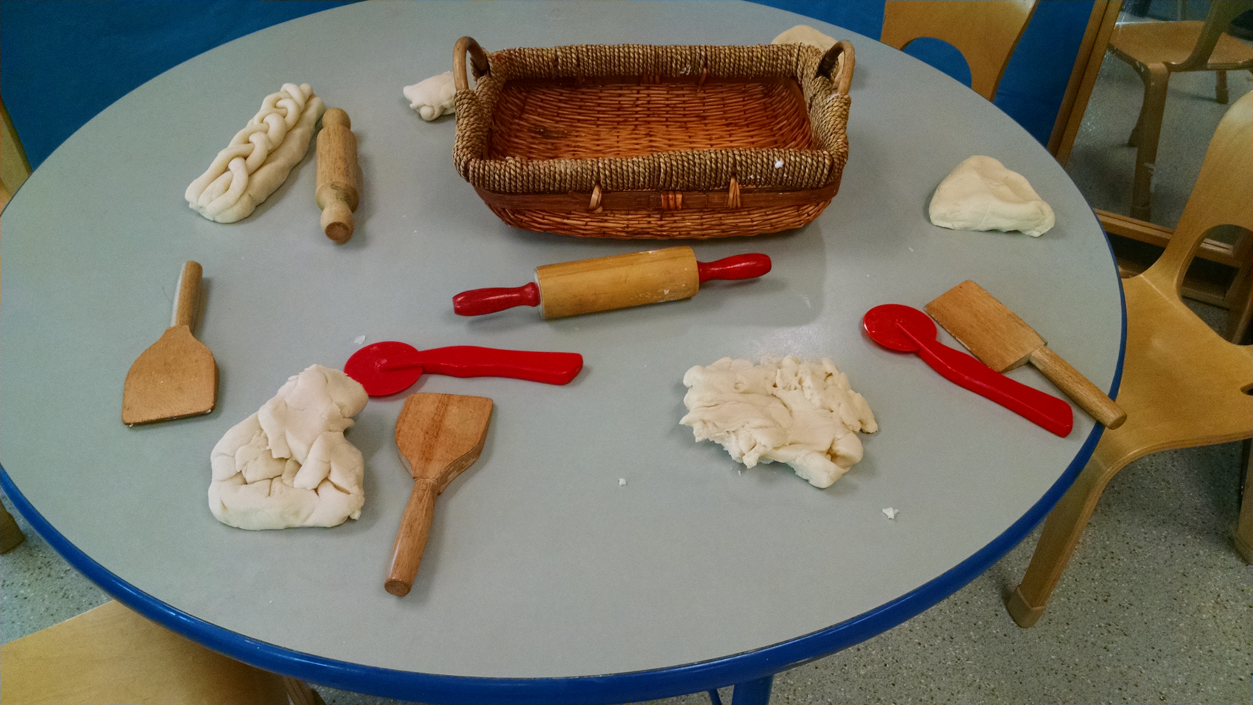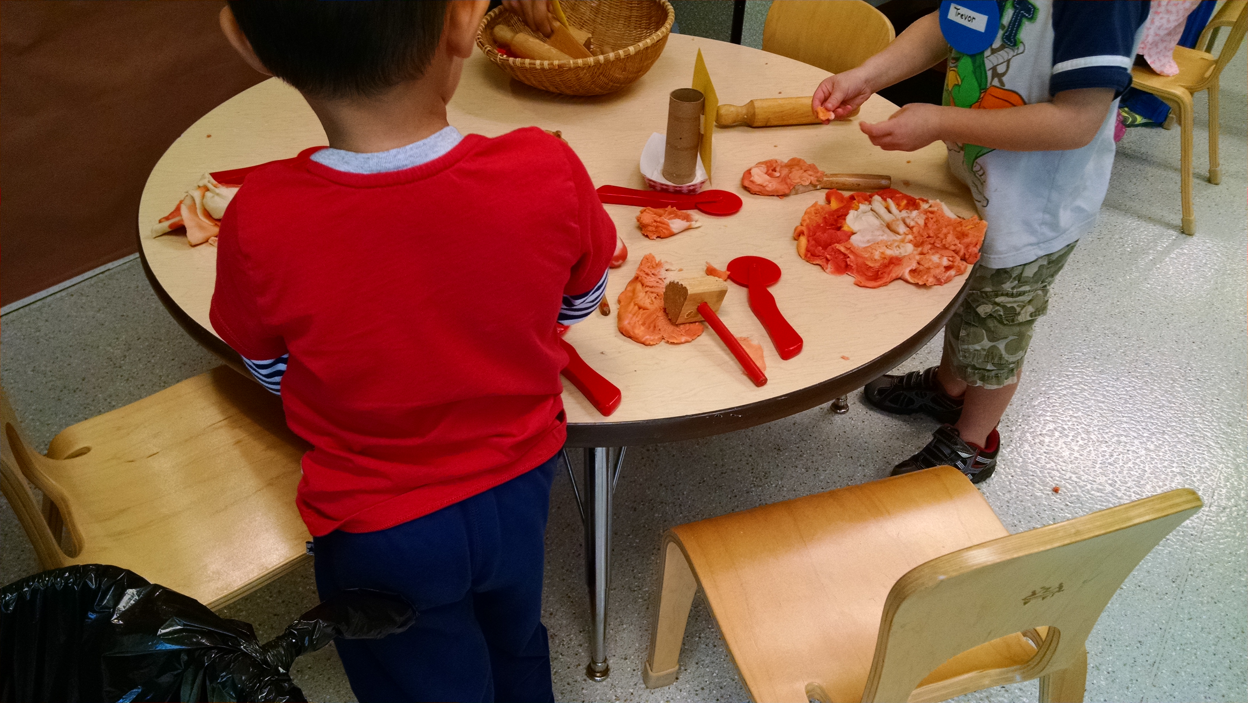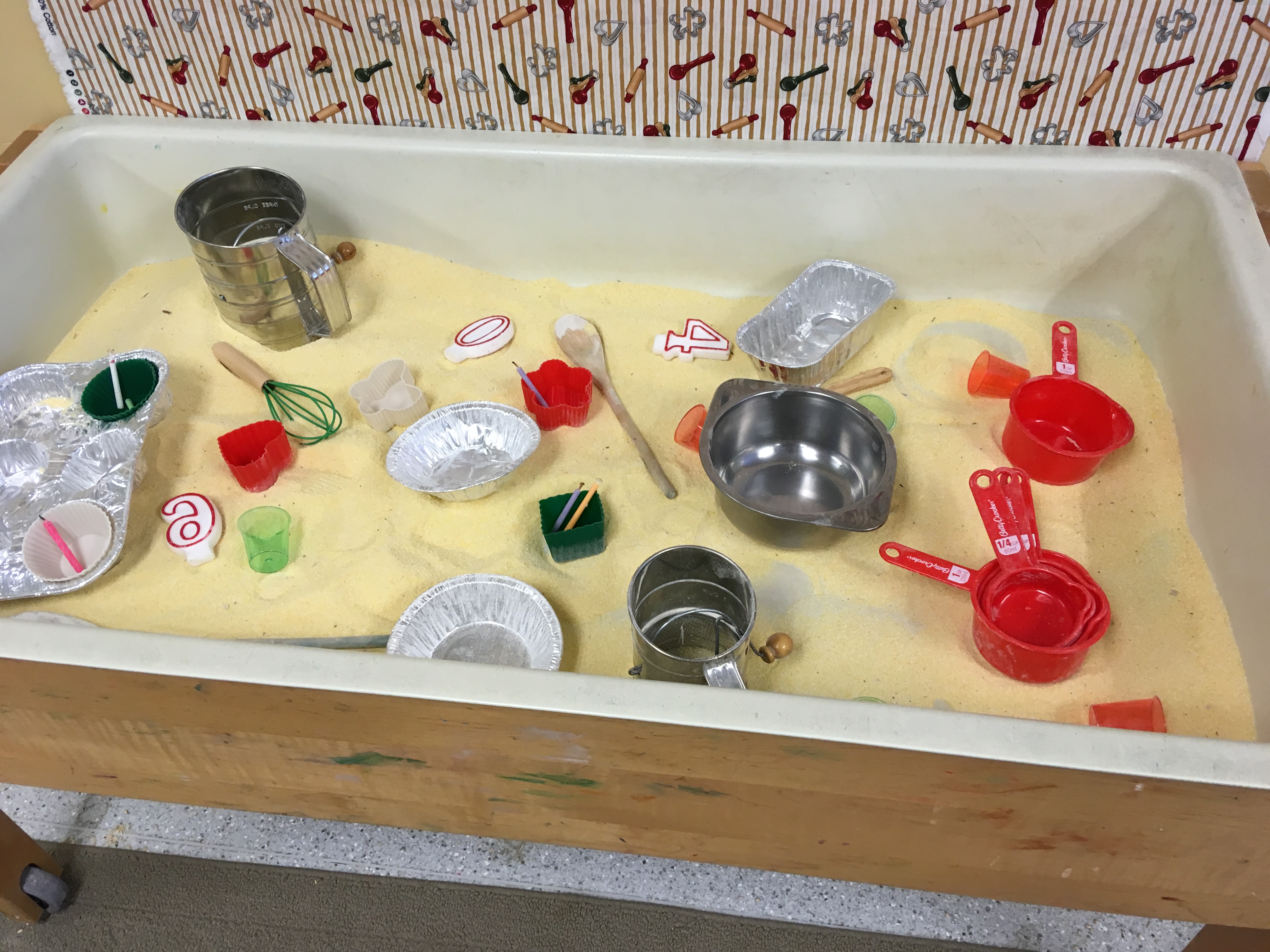 In the sensory tables, and with play-dough, they can explore how to use so many tools: tweezers, tongs, spoons, scoops, shovels, funnels, rolling pins, cookie cutters, egg beaters and whisks, pipettes and eye droppers, scales, measuring cups and spoons, potato mashers, pizza cutters…