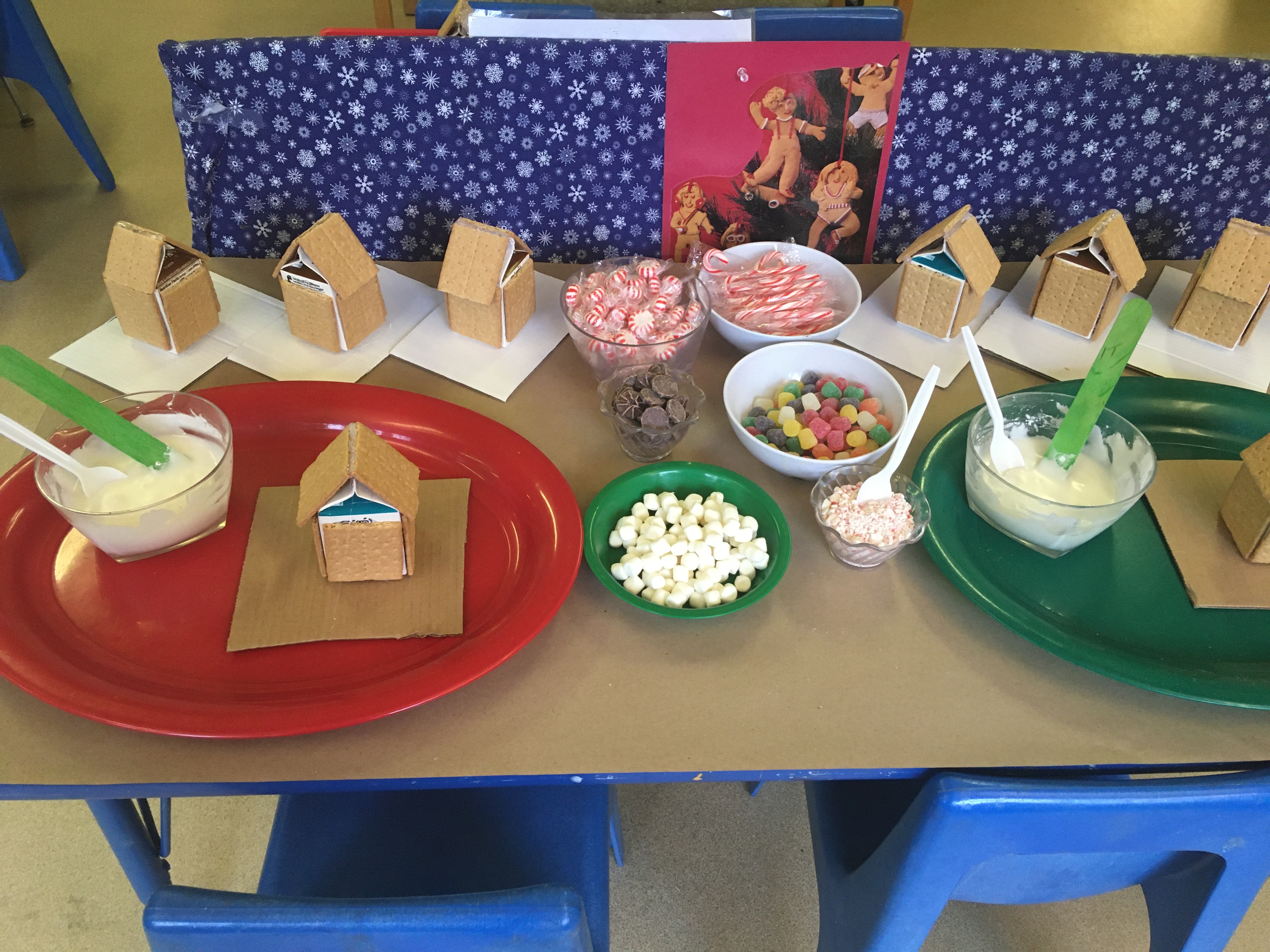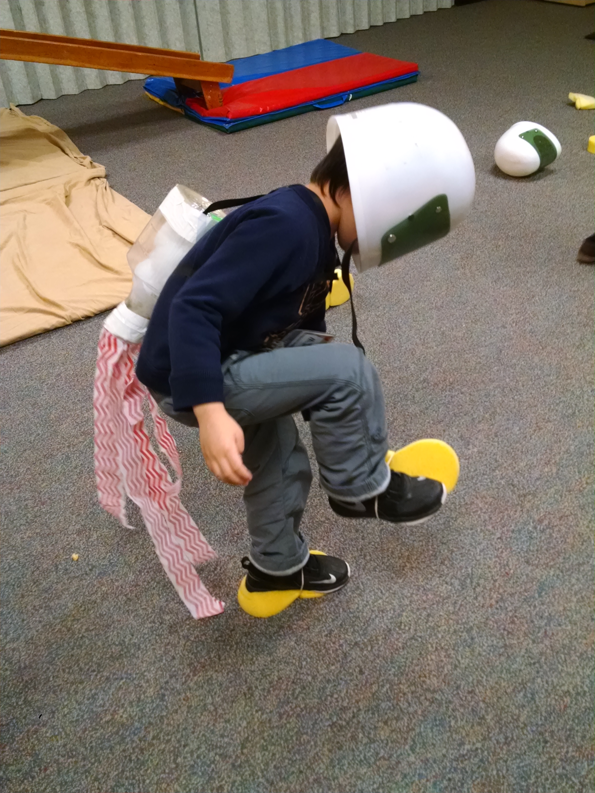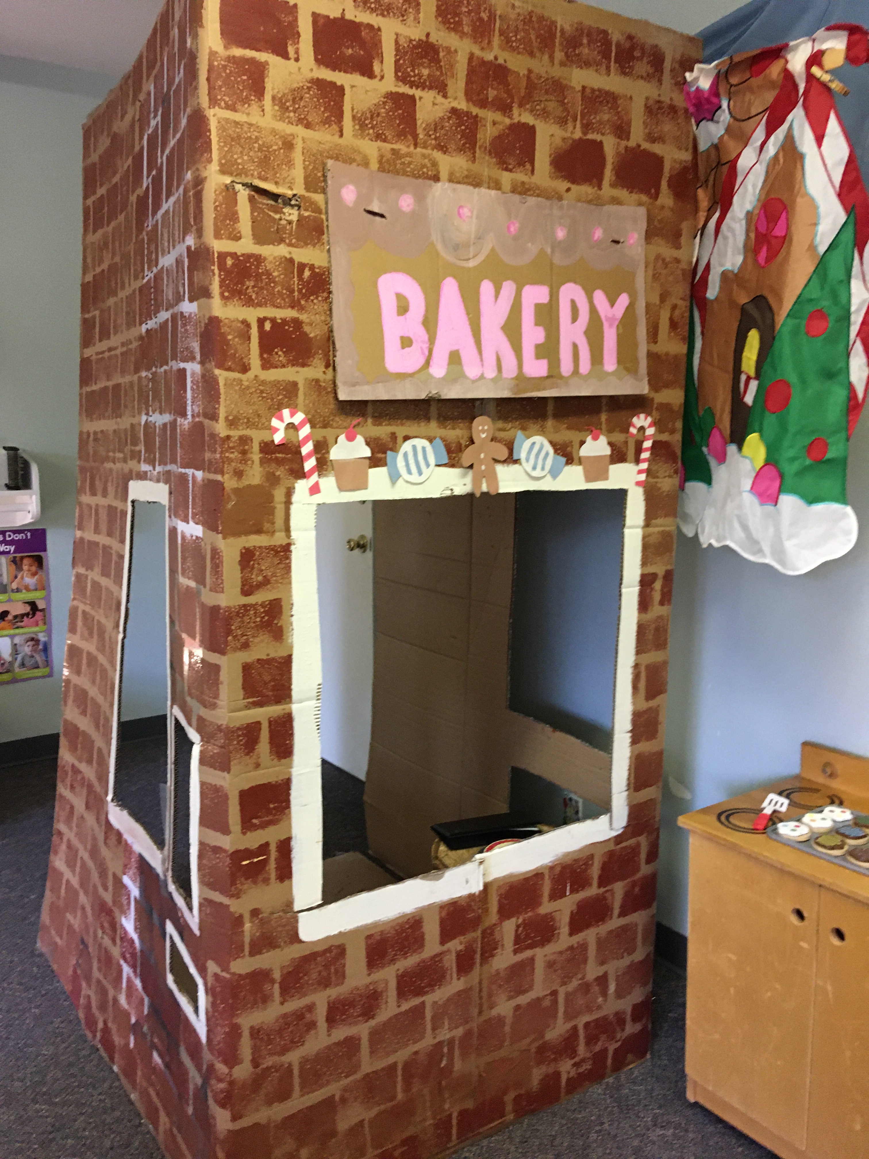 Most preschools have a play kitchen full of pretend food, dress-up clothes that allow children to play out many roles, plus baby dolls and stuffed animals to practice nurturing skills with. Many of those materials may be available every class during the year so children have lots of chances to explore them and use them in many ways. Teachers may also have special themes for dramatic play: maybe a farmer’s market in the fall, a gingerbread bakery in December, a valentine post office in February, or a spaceship and mission control.