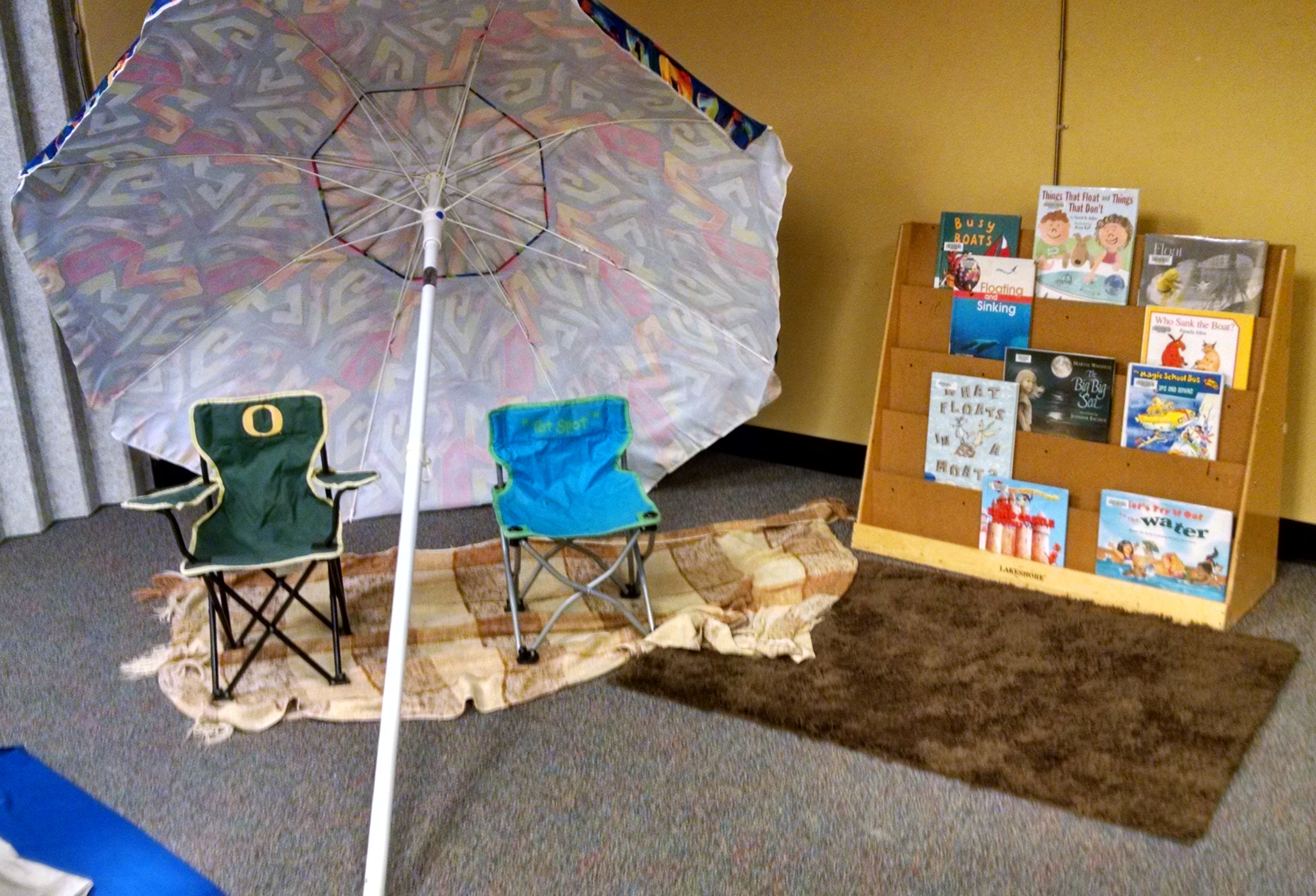 Stories are always available in a preschool classroom. Some schools (like Waldorf) use only oral storytelling, but in most, there are books available. They may be used during group time, but also available for independent exploration. Literacy practice may also be incorporated elsewhere: signs or menus in the pretend play area, books on CD to listen to, board games, and in art projects.