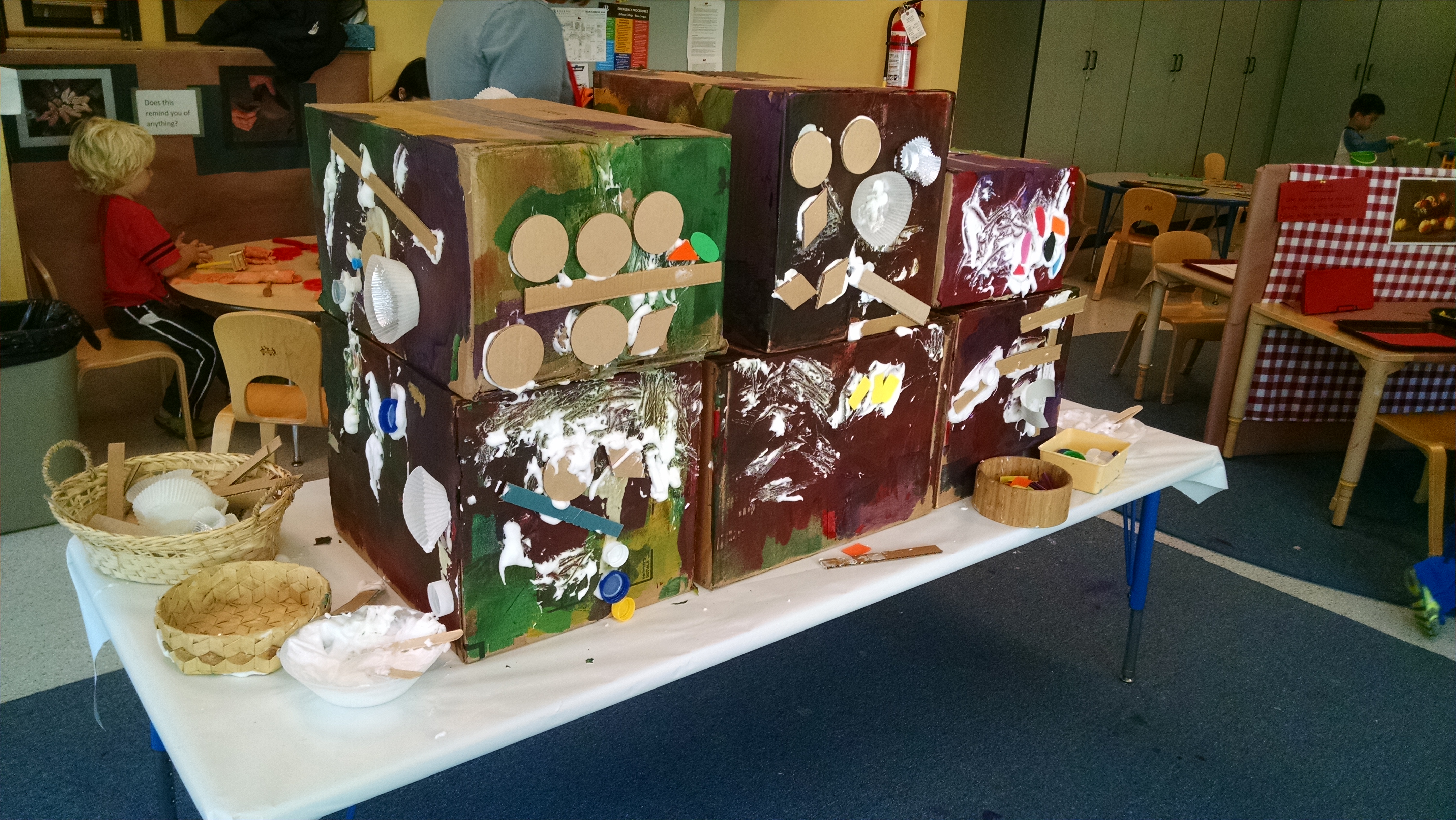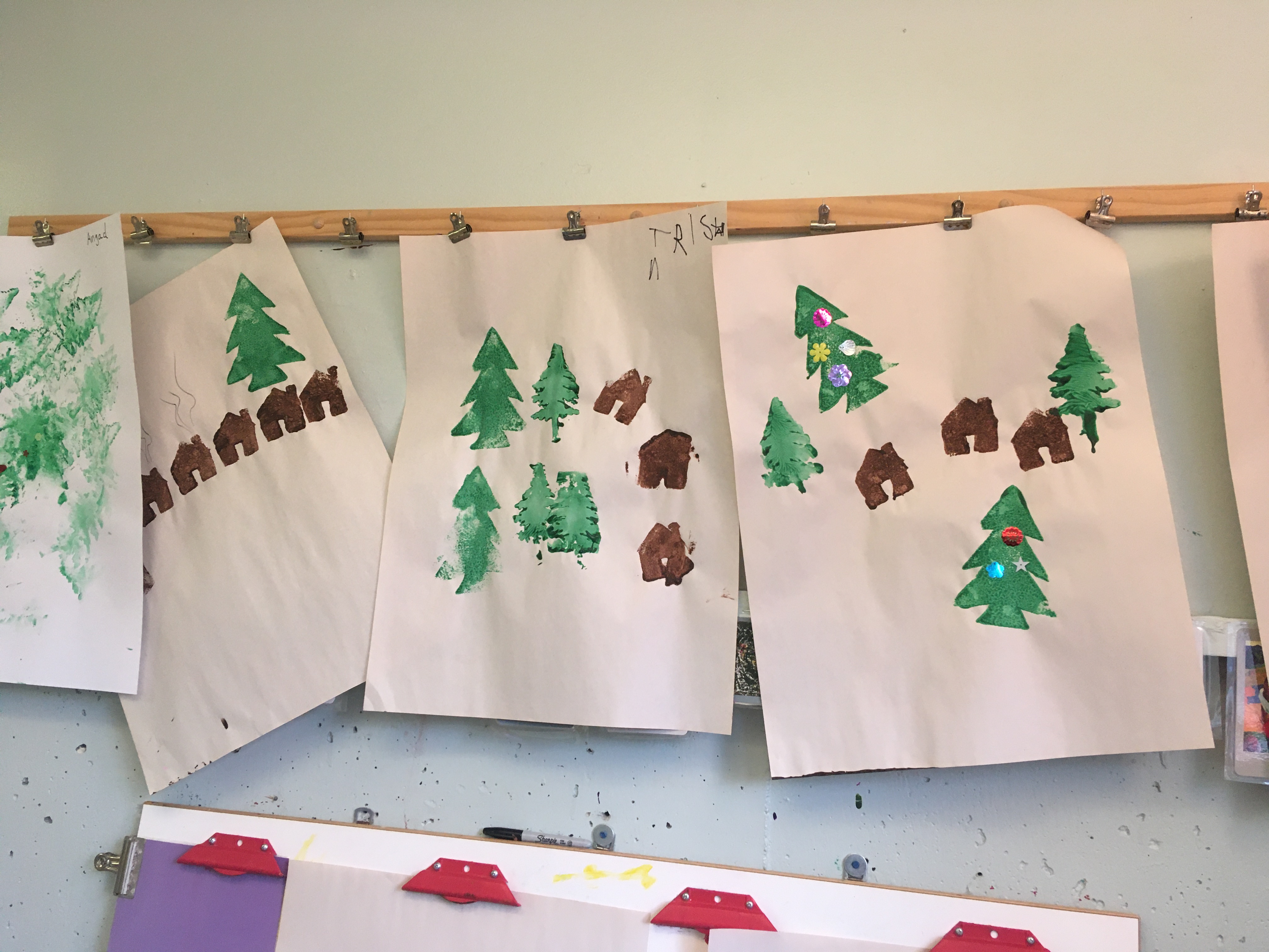 The children learn how to use all the tools and all the media, they build their finger muscles and their pencil holds, they learn names of colors and how to mix new colors, they learn to recognize shapes and to create shapes, they learn about symmetry, balance, and design. The art is a creative outlet for expressing their feelings and learning that their ideas have value.