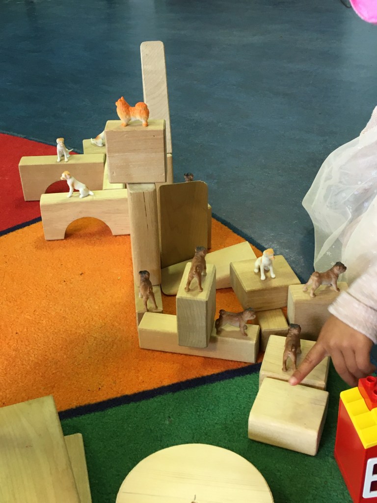 The Invitation to Play: the teachers may offer construction toys (like Legos, blocks, Magnatiles) or other creative building supplies (TP tubes, toothpicks and gum drops). Children are encouraged to use them to build any structure they choose. Teachers often mix in other supplies for inspiration: for example, add a toy giraffe and an elephant and children may build a zoo. Add cars and they’ll build roads and cities. Add pictures of famous buildings and they’ll build their representation of the Eiffel Tower. If one child wants to build a stable for her toy horses, and the other wants to make a spaceship, they have to negotiate how to share the blocks fairly.