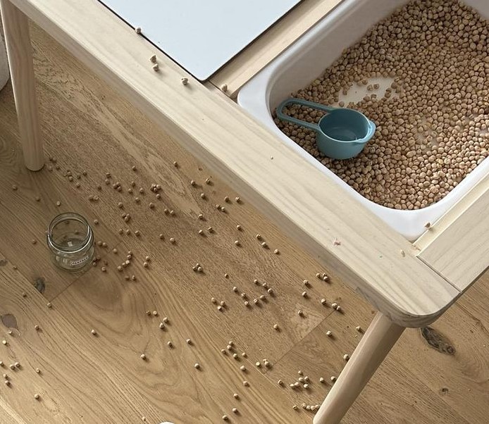 If possible, put sensory tables on linoleum or hardwood floors – it’s way easier to clean up than carpet!