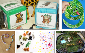 Set up a “beach”. Put out a plastic tub of water – if you have one big enough for your child to walk in or sit it, that’s great. It not even a few bowls full of water to play in with a few scoops to pour back and forth is fun. If you have access to sand, put out a small container of sand for them to play in. (Tip – put the tub on top of a plastic tarp or large trash bag so that when they’re done playing, you can pour all the sand they spilled back into the tub.) Put up a beach umbrella. Bring out towels, and beach reading, and drinks with paper umbrellas. Play some surf music.