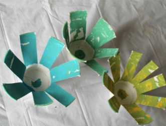 Bubble wrap prints. Place bubble wrap on a tray. Dribble some paint on it. Let your child use their fingers or a paint brush to spread the paint around. Then press paper onto it to print the paper, then cut the paper into fish or starfish shapes. (photo Crafty Toddlers)