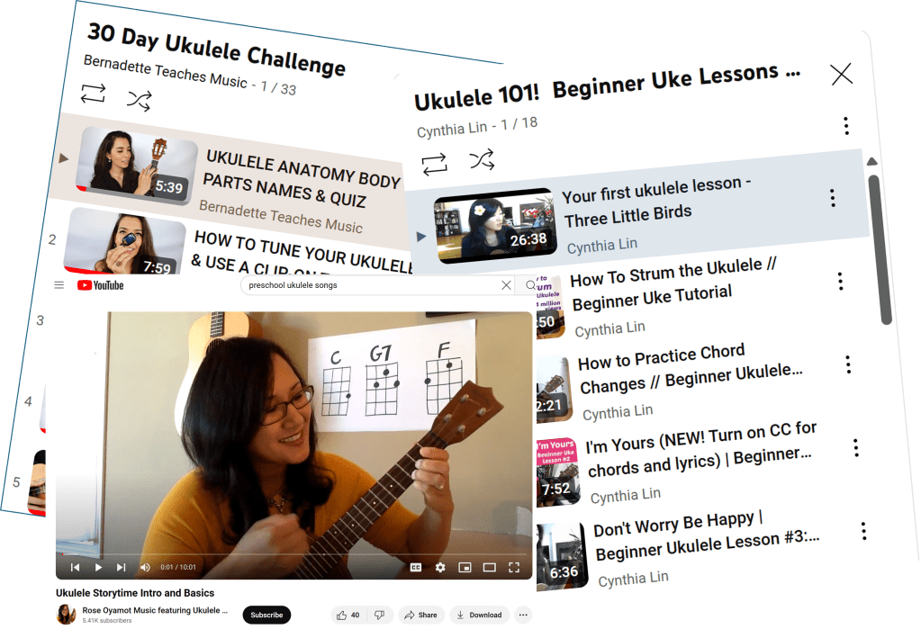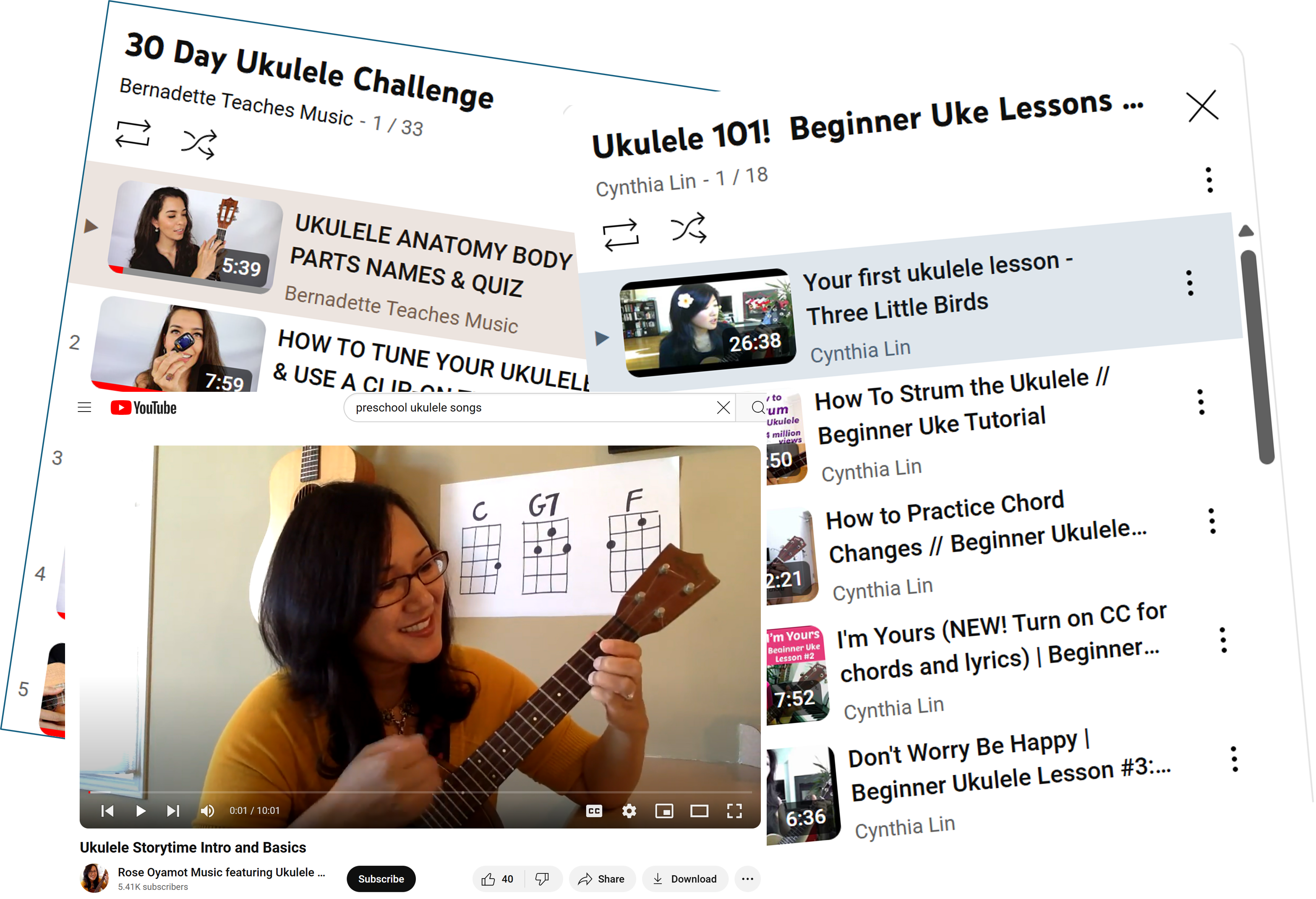Here’s my approach: Most mornings when I’m playing on my ukulele, I think of a song I want to work on, go to YouTube and search for “[song title] ukulele” and then work through the tutorials I find.