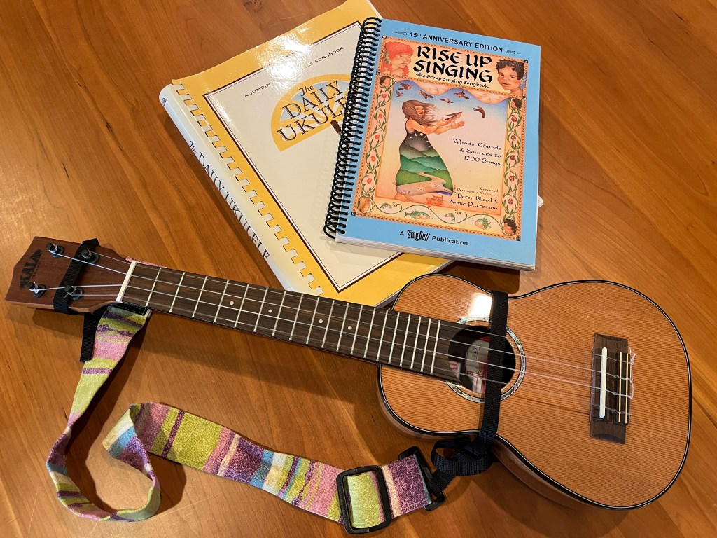 I chose to work with songs from the group singing book Rise Up Singing (Amazon affiliate link, or buy directly from the publisher). There are 1200 songs in the book! So, I am choosing some of my favorites / things I think may be commonly sung. Many of them also appear in the Daily Ukulele Songbook. (Amazon, publisher). Or they appear in the songbooks for the Eastside Ukulele Players group I play with.