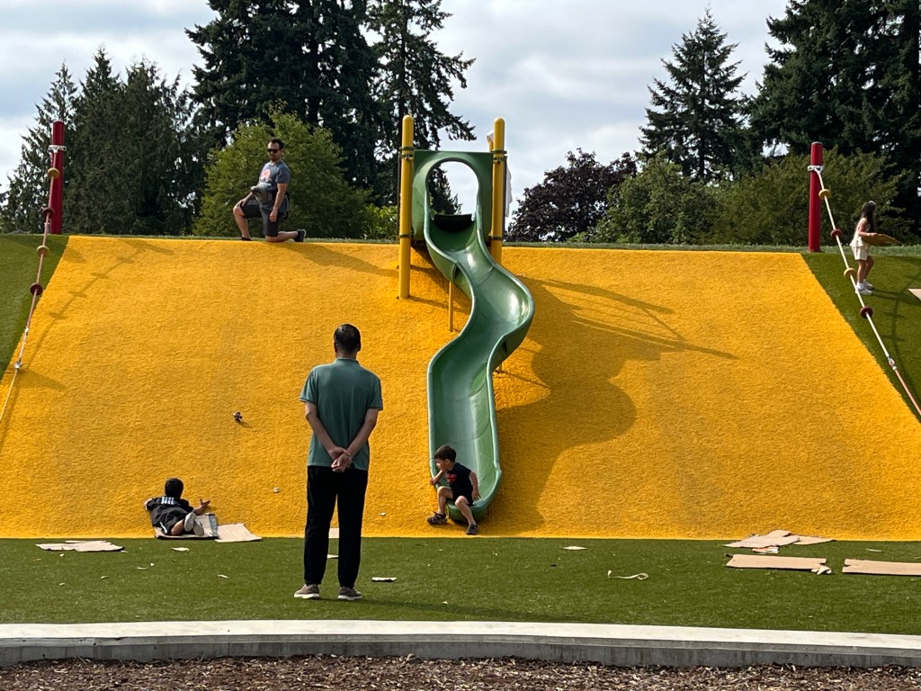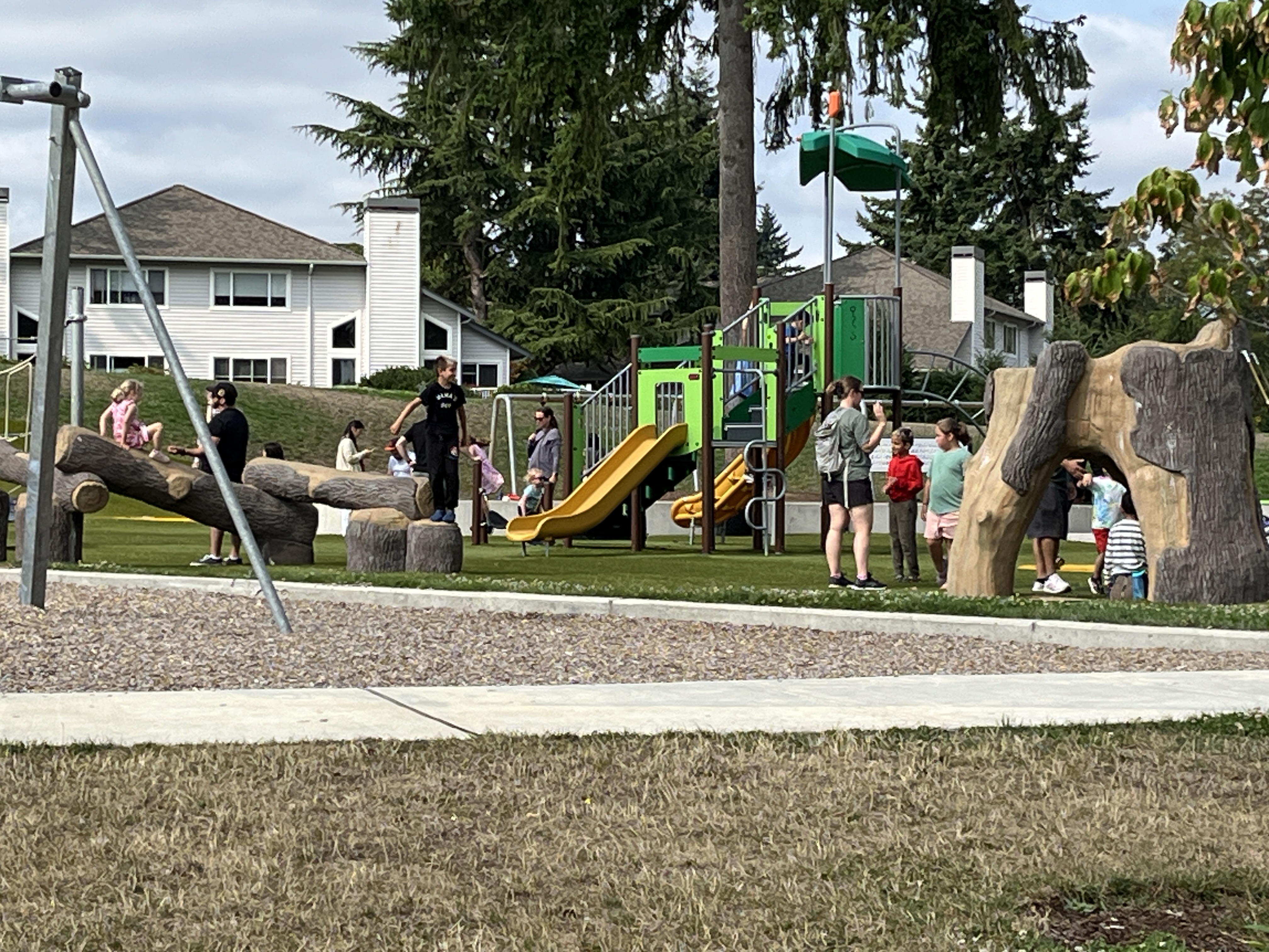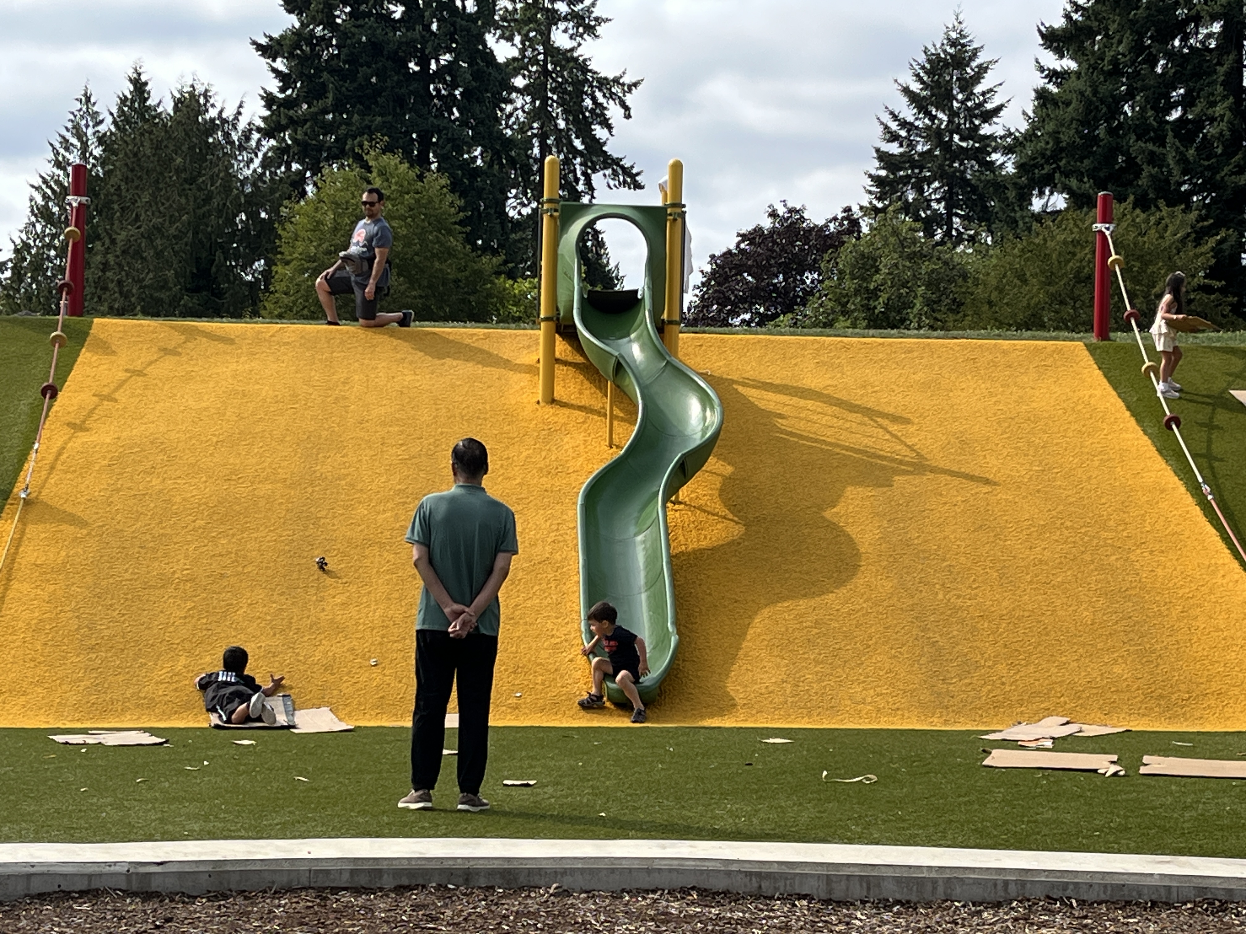 We tried out a new-to-us park recently – 132nd Square Park is located at NE 132nd St and 132nd Ave NE in Kirkland, about a mile east of Evergreen Hospital.