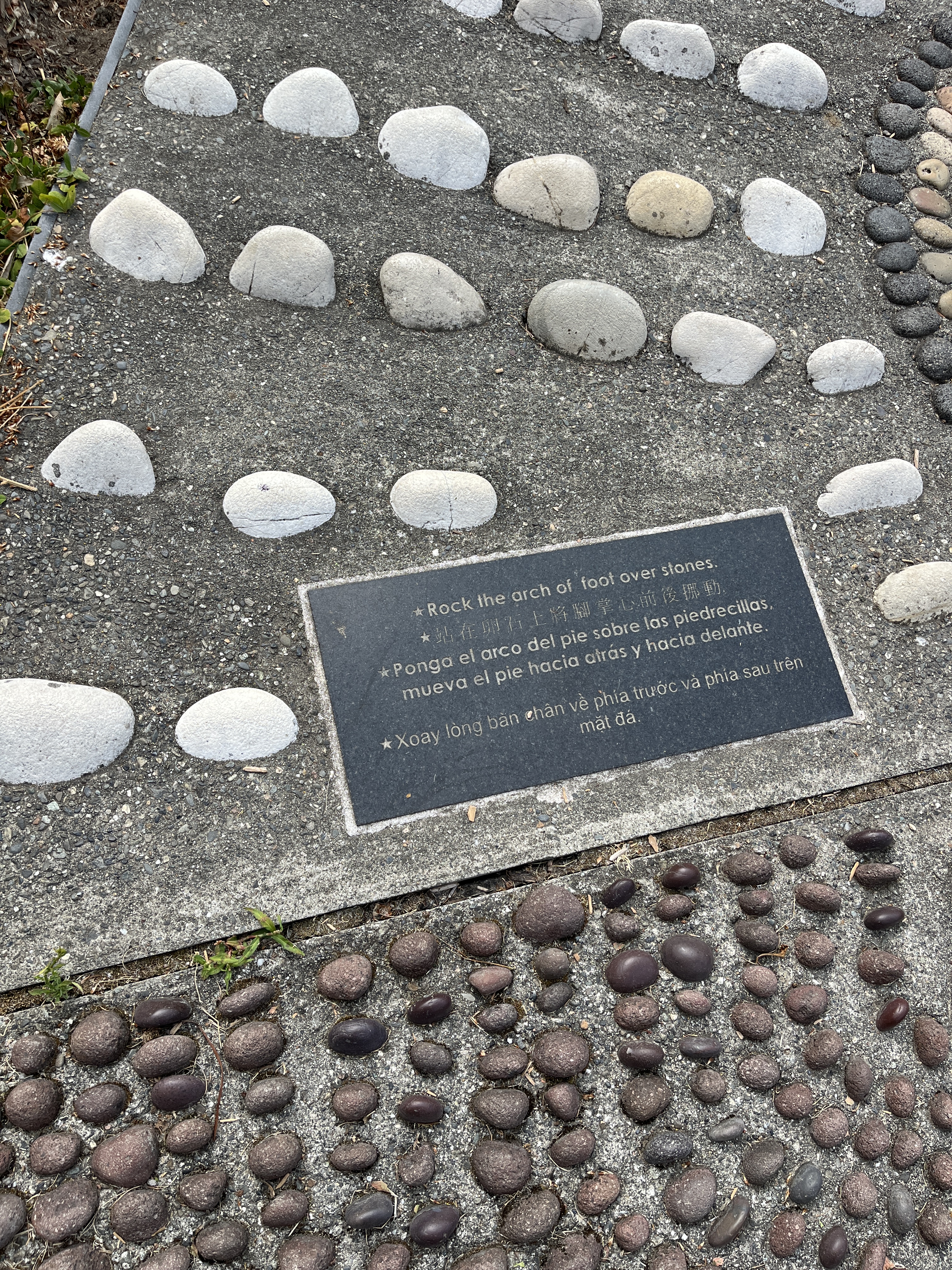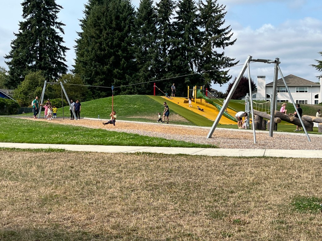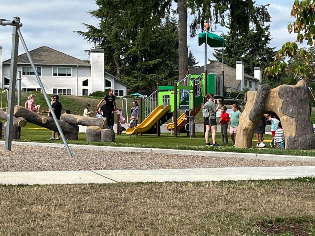 They have a multi-purpose synthetic turf playfield for soccer and more, a smaller grass field for softball or baseball, an all-abilities playground with zipline, year-round restrooms, and three picnic shelters. They also have a walking labyrinth and a reflexology path with raised stones to massage your feet while you do a walking meditation.