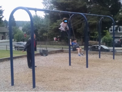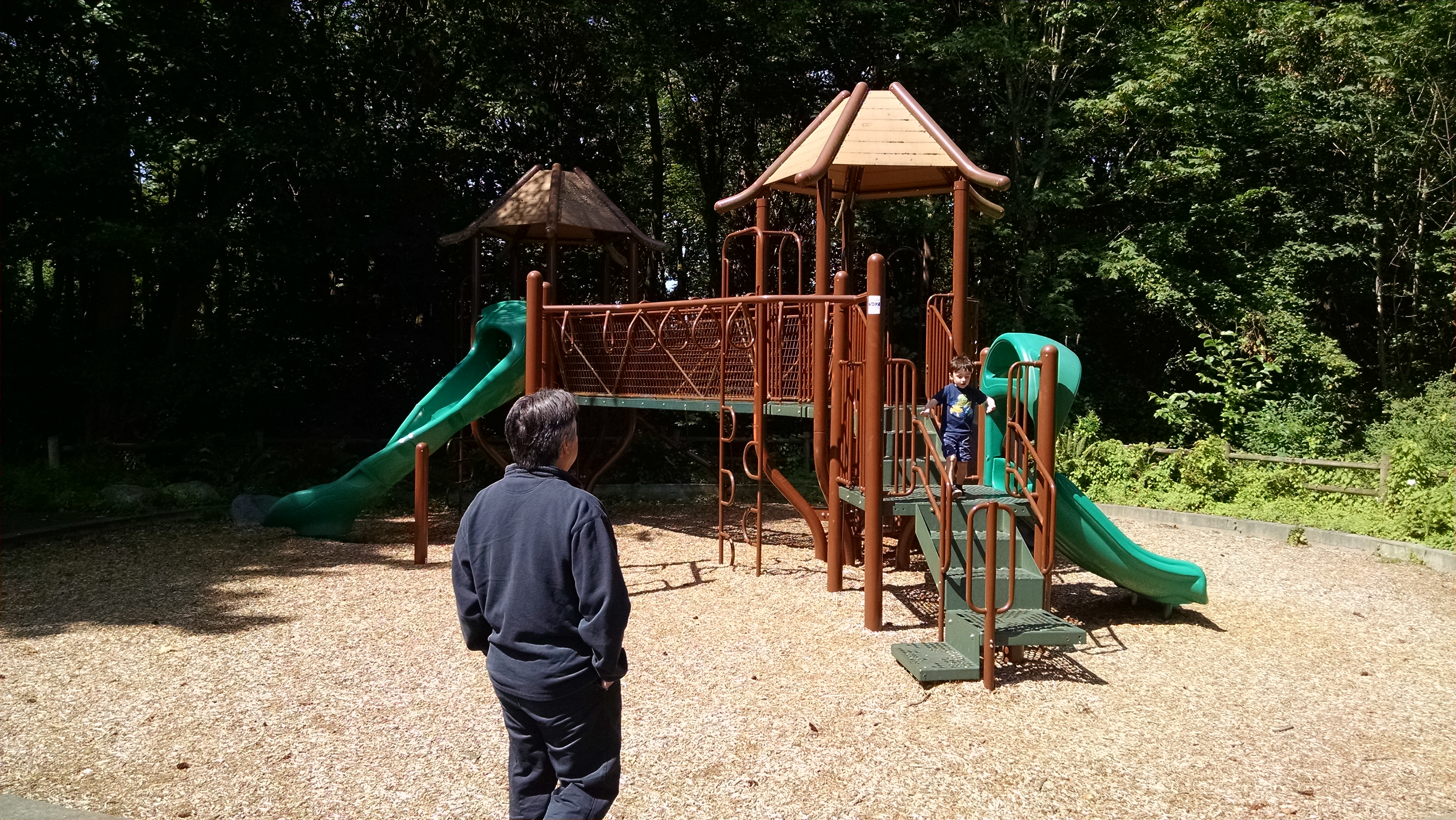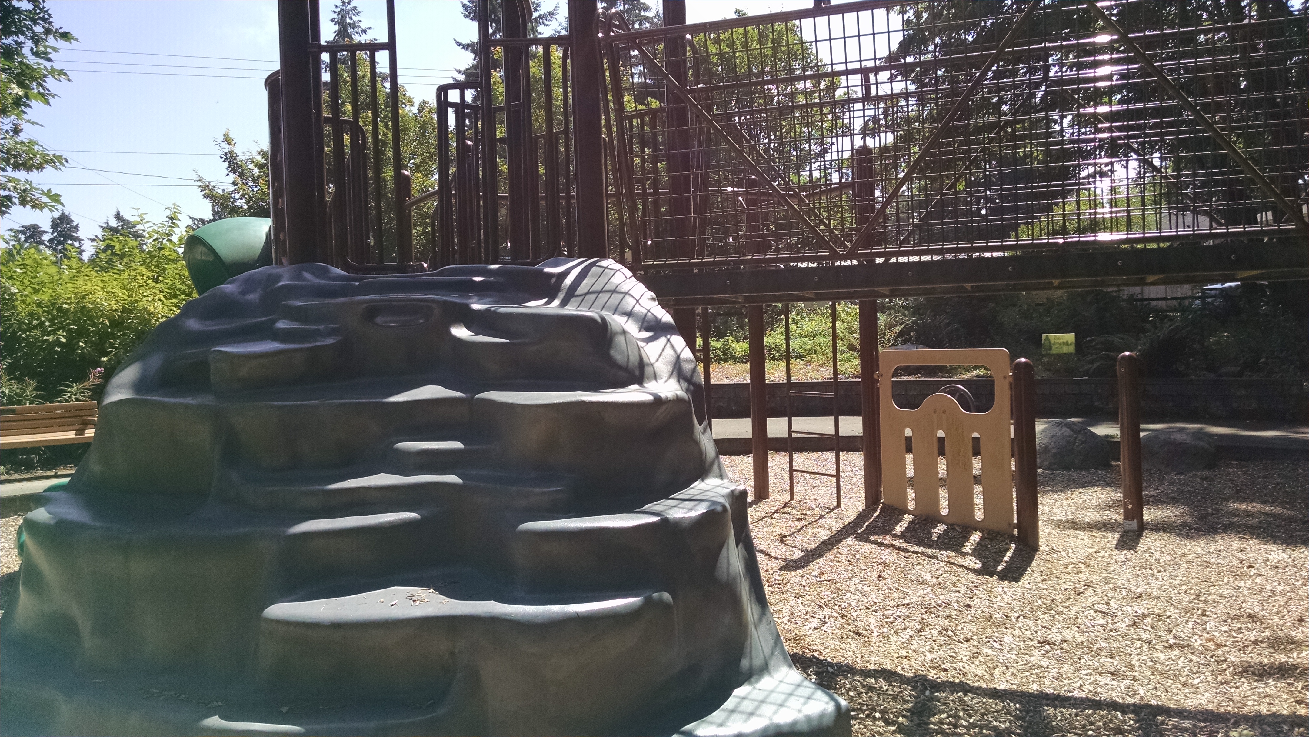 Note: this park is not as well maintained as we’re used to in Kirkland. The playground could really use a pressure washing (especially where the moss is growing on the roof) and there’s lots of weeding to be done. But there’s no trash or anything – so the users keep it tidy.