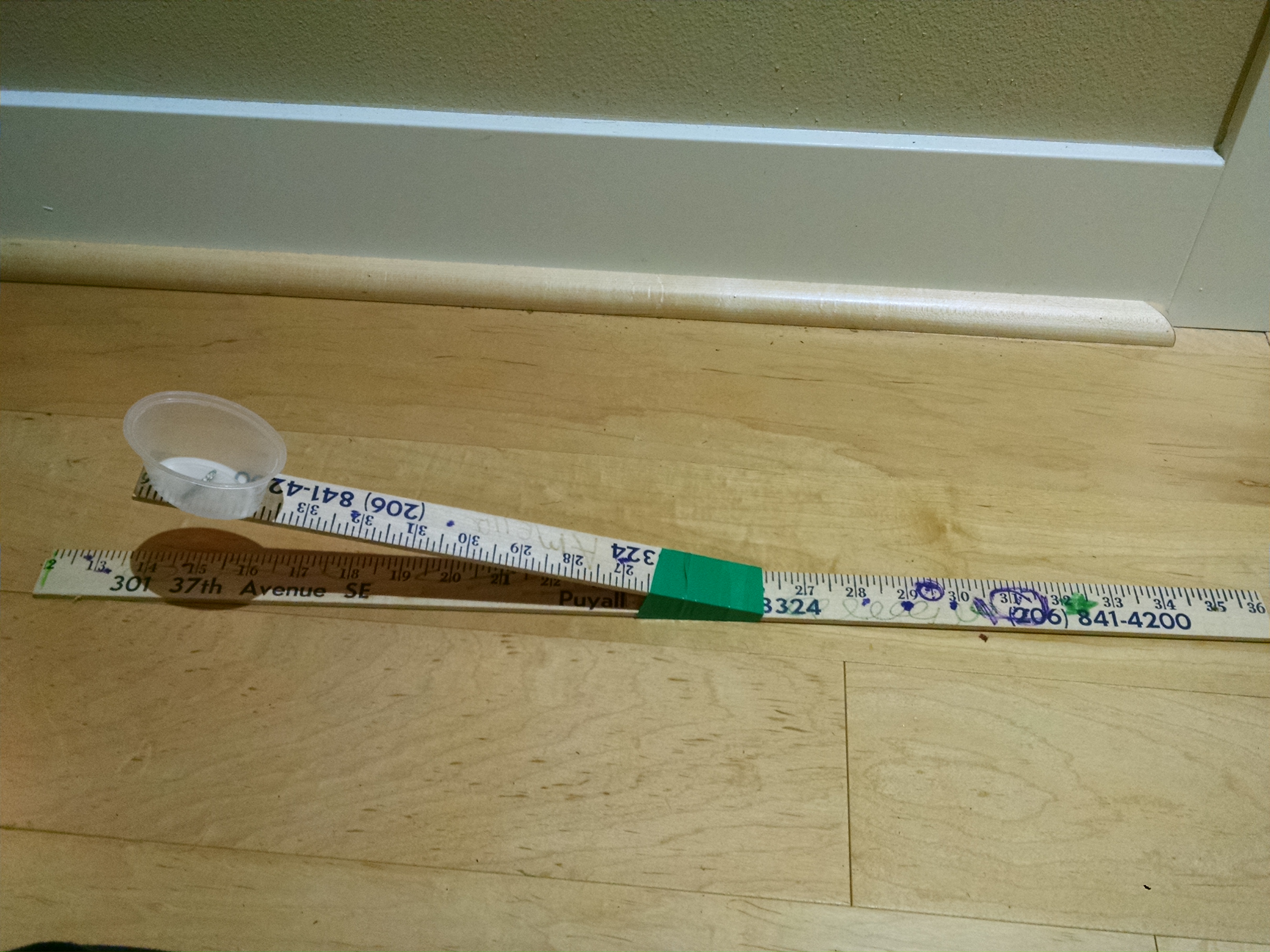 If the coin / pompom keeps sliding off the end of the bar, you can glue a lid to the end of the bar so you have a “bucket” to put your coin / pompom into.