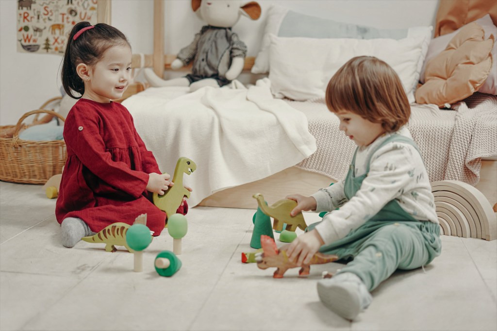 If they start to have a conflict, don’t feel like you have to intervene the moment it begins. Small disagreements often work themselves out, and children learn through the process. So, try sitting back and seeing what happens. Sometimes, things will start to go south, and they may need help negotiating a compromise. Rather than telling them they have to share, it may be more helpful to say let’s take turns – you can have it for one more minute, then it’s their turn.